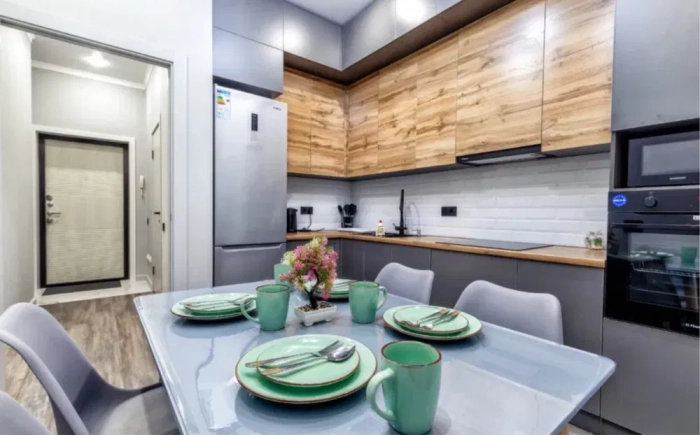 В квартире есть: Кухня, Телевизор, Балкон, Кондиционер, Интернет, Кабельное ТВ, Телефон, Стиральная машина, Холодильник