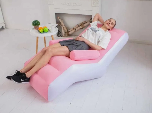 Puflanadigan divan Havo divan S shaklidagi Puflanadigan stul Bu juda qulay shishiriladigan stul bo'lib, qulayligi jihatidan oddiy mebeldan qolishmaydi.